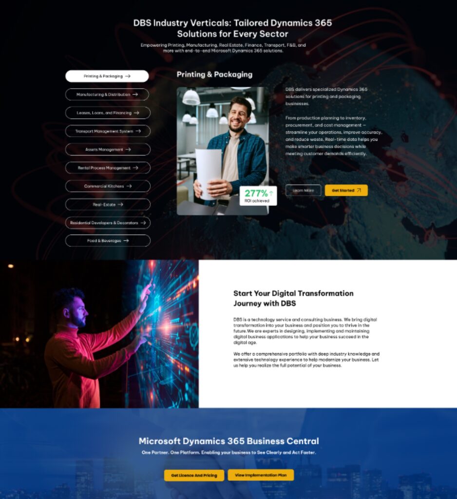 Dynamics Business Solutions (DBS), a leading IT company based in the UAE, aimed to enhance its digital presence to better reflect its enterprise capabilities and attract high-value clients. Their existing website lacked modern UX, scalability, and flexibility for marketing updates.